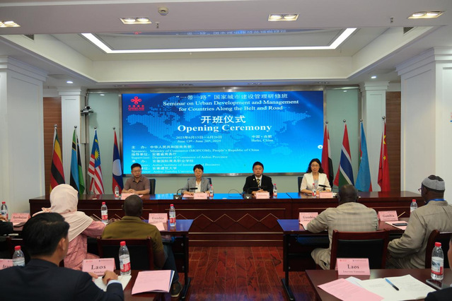 本网讯  6月13日下午,由安徽国际商务职业学院承办的“一带一路”国家城市建设管理研修班在合肥开班。此次研修班由中国商务部批准,旨在践行国家“一带一路”倡议,促进国际城市建设管理经验交流与合作,共有来自阿塞拜疆、厄立特里亚、冈比亚、格林纳达、伊拉克、老挝、马来西亚、菲律宾、南非、桑给巴尔、津巴布韦等12个国家的31名学员参加。建筑与规划学院院长顾康康教授应邀参加开班仪式。