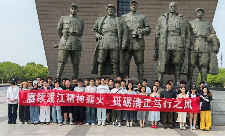 本网讯 为深入学习贯彻党的二十大精神,深化党史学习教育,弘扬红色文化,增强党员队伍的文化自信与党性修养,2025年4月17日,建筑与规划学院建筑学专业研究生党支部组织党员前往渡江战役纪念馆和安徽省美术馆参观学习,开展了一场别开生面的红色主题教育实践活动,学院党委委员陈宜瑜老师带队前往。此次活动紧密结合中央八项规定精神学习教育,倡导廉洁务实作风,确保学习教育活动既严肃认真又高效节俭。