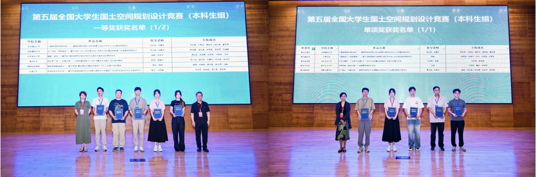 建筑与规划学院规划系本科生李梦荷、产斯铨、葛怡然、胡梦妮、唐安琪的作品《潮绣绿岸,珠润花城——潮间带城市视角下的白鹅潭大湾区艺术中心片区更新规划设计》(指导老师:李伦亮、张馨木)获得规划设计竞赛(本科生组)一等奖、最佳立意奖。陈刘亮、张忆涵、叶紫璇、吴非凌、李超毅的作品《红厂旧忆,绿岛新生——基于包容-多元-共生理念的广州市天河区鹰金钱食品厂旧址更新规划设计》(指导老师:李伦亮、张馨木)获得一等奖。张炯亨、岳严军、曾泽华、张训哲、吴星宇的作品《红棉有重开,葺鳞以聚龙——时空折叠理念下的聚龙湾片区规划设计》(指导老师:周梦茹、汪勇政)获得三等奖。城乡规划专业研究生杨爽艳的作品《淮河流域行蓄洪区乡村承洪韧性评估与治理路径研究-以安徽段上游为例》(指导老师:顾康康)论文竞赛(研究生组)三等奖。