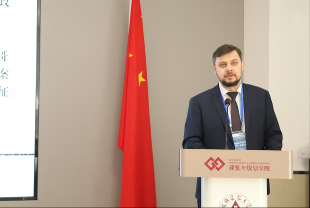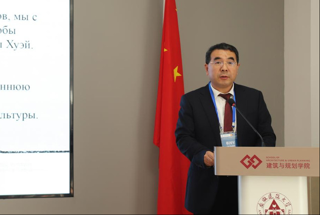 蔡国军首先代表全校师生,向远道而来的俄罗斯下诺夫哥罗德国立建筑与土木工程大学代表团表示最热烈的欢迎。在致辞中,蔡国军校长深情回顾了两校从相知到携手并进的合作历程。他指出,双方坚持“以建筑为媒介,以木构为语言”,持续深化在教育与科研领域的务实合作,本次工作坊是推动徽州建筑文化走向世界,促进中华优秀传统文化创造性转化与创新性发展的重要举措。他强调,期待以此为契机,进一步拓展中俄建筑教育合作新路径。谢戈列夫·德米特里在致辞中表示,两校合作已从理念共识转化为丰硕成果,并乘着“中俄教育交流年”的东风,迎来更广阔的前景。他高度评价本次活动是两校携手共进的生动实践,更是中俄人文交流与友谊深化的精彩缩影。