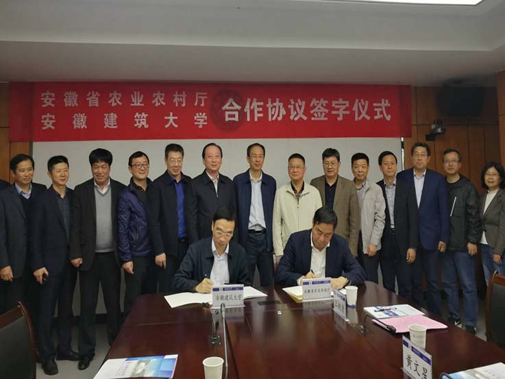 签约仪式前,在孙道胜校长、蔡新立副校长的陪同下,卢仕仁厅长率安徽省农业农村厅有关处室负责人参观了安徽省乡村振兴研究院,并听取了工作简要汇报,对安徽建筑大学支持和参与全省乡村振兴战略实施中率先行动和所取得的成绩給予了高度评价。(作者:赵强;审核:朱达荣)
