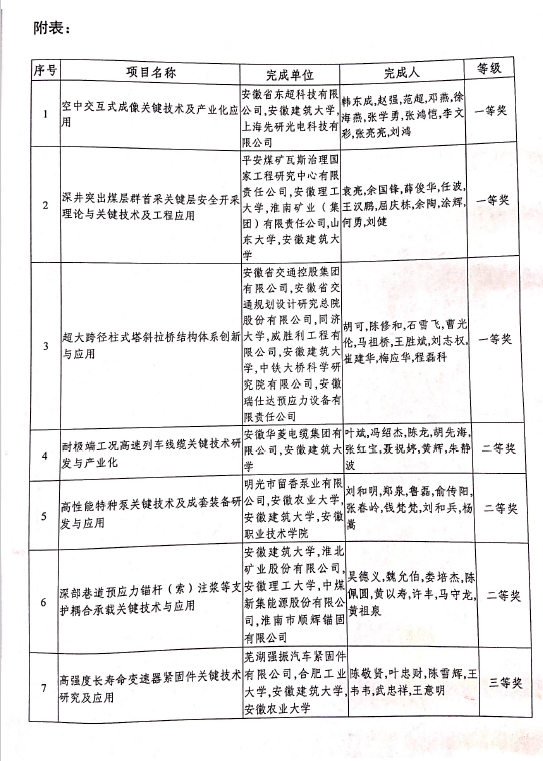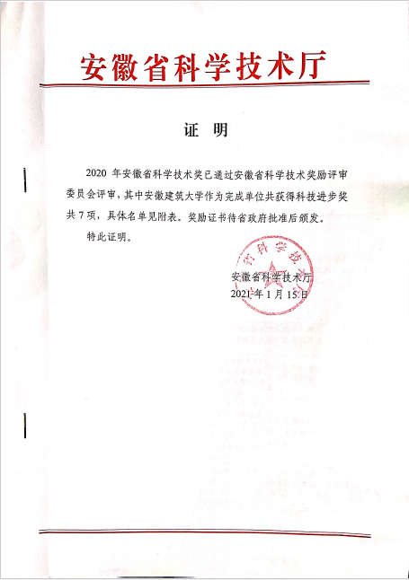 2020年,学校积极谋划,精心组织申报各类科技奖。获省部级自然科学科技奖10项,其中一等奖4项,二等奖4项,三等奖2项,人文社会科学获奖取得新突破。获得第八届高等学校科学研究优秀成果奖(人文社会科学)交叉学科二等奖1项,该奖是目前人文社科领域国内最高层次的奖项,安徽省杰出青年基金项目取得零的突破。