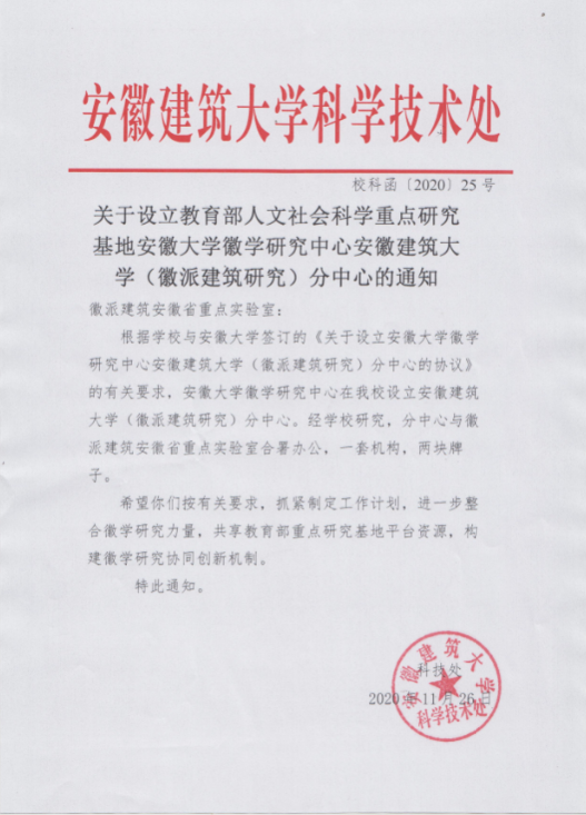 2020年,学校科研平台布局不断优化,建设质量不断提升,运行与管理日趋规范。获批成立安徽省国土空间规划与生态研究院等4个省部级科研平台;设立教育部重点人文社科基地安徽建筑大学(徽派建筑研究)分中心,新增校级科研平台4个。智能建筑与建筑节能安徽省重点实验室等5个平台顺利通过主管部门组织的年度工作检查和验收评估。完成2019年度学校14个科研平台年度考核;下拨学校科研平台2020年度运行经费920万元,完成仪器设备采购1000万元;设计、制作全校科研平台宣传手册,第一批16个重点科研平台网站上线运行。