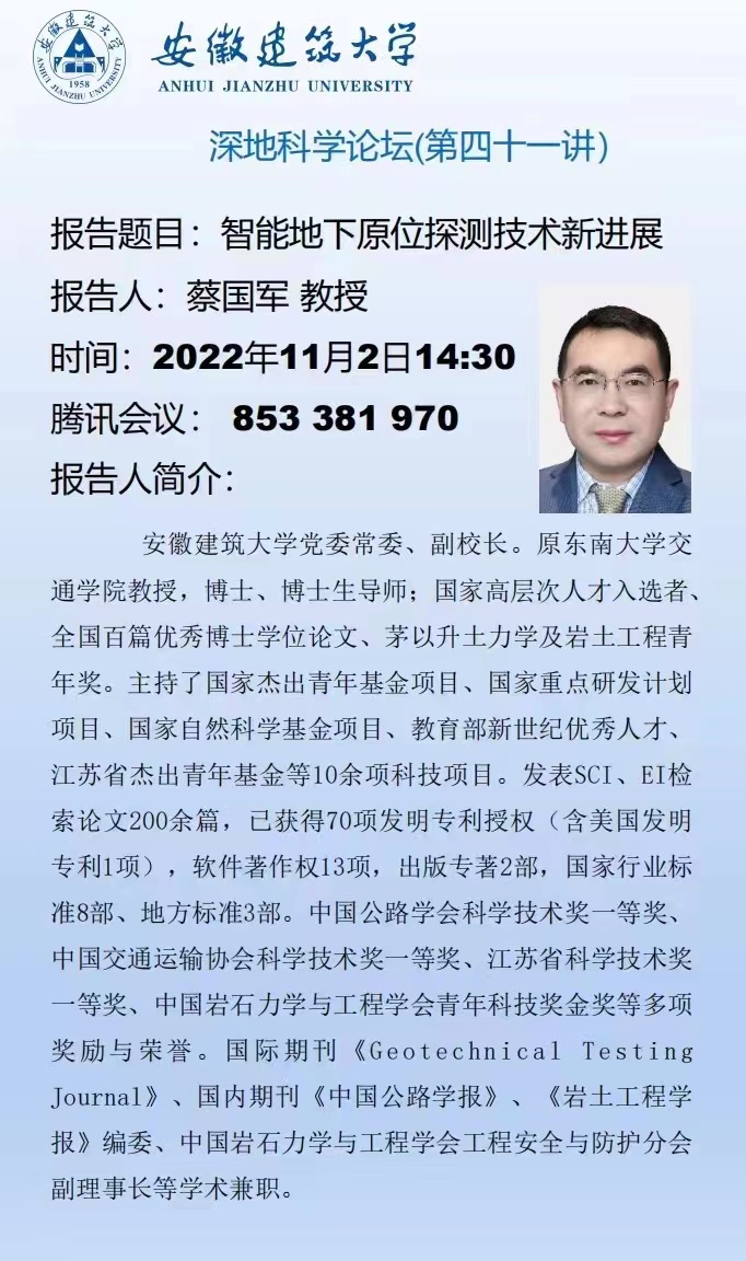 2022年第15场学术报告:智能地下原位探测技术新进展