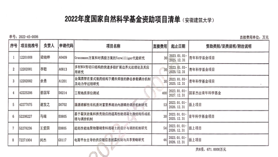 精心组织科研项目申报。全年组织申报各级各类科研项目770余项,立项290余项,全年科研项目到账经费6000余万元。国家基金项目立项10项,到账经费711万元,其中蔡国军教授主持的“工程地质原位测试”项目获2022年度国家杰出青年科学基金资助,经费400万元,实现了学校国家杰青项目上零的突破。制定《安徽建筑大学关于推进2023年国家基金申报工作的“五五五”行动方案》和《安徽建筑大学2023年国家基金申报工作计划》,对各学院推荐的国家基金重点培育对象进行登记造册,做好跟踪和备案,落实好各项服务和保障工作,力争实现国家基金申报取得突破。
