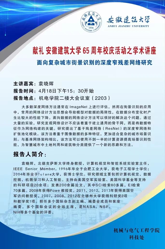 2023年第14场学术报告:科研与科技成果转化分论坛第一期——面向复杂城市街景识别的深度窄残差网络研究