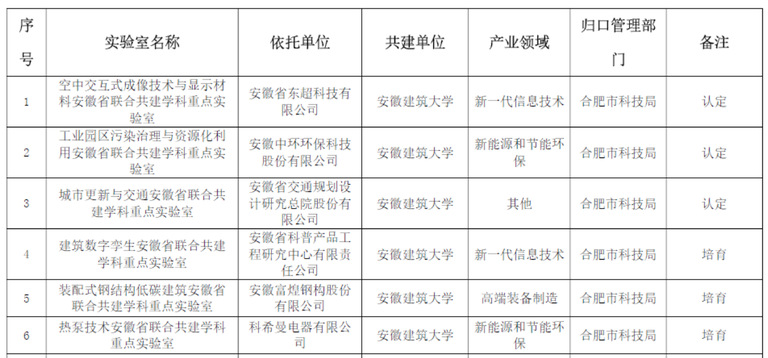 4月19日,安徽省科学技术厅和安徽省教育厅联合下发了《关于发布首批安徽省联合共建学科重点实验室认定和培育名单的通知》(皖科基地秘〔2023〕108号),由我校参与共建的“空中交互式成像技术与显示材料”等3个联合实验室获得认定,“建筑数字孪生”等3个联合实验室获得培育。