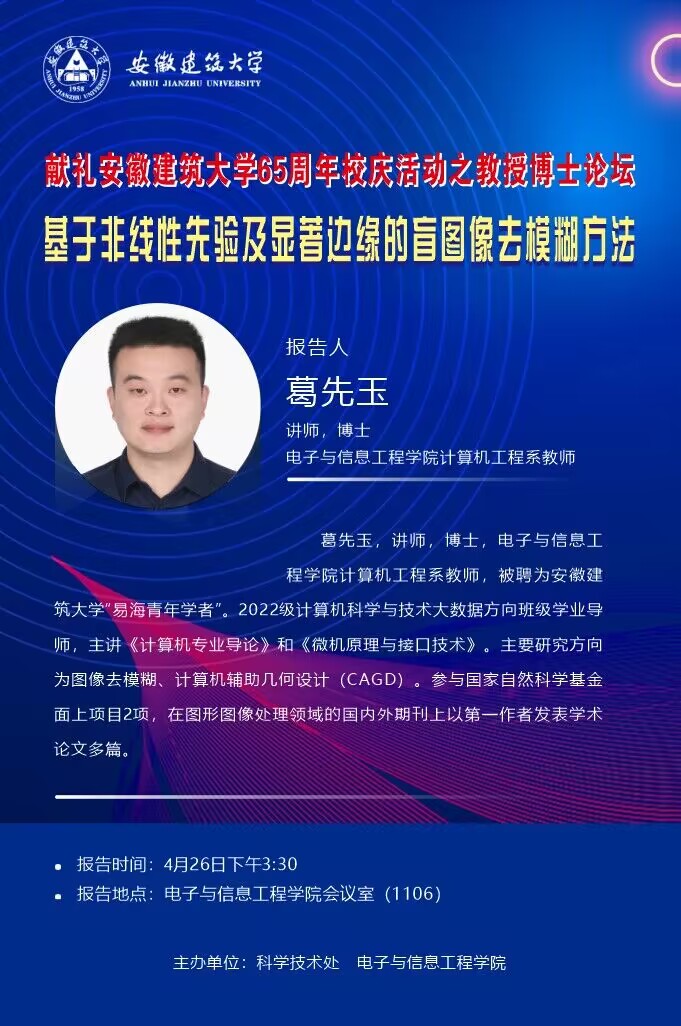 2023年第17场学术报告:科研与科技成果转化分论坛第四期——基于非线性先验及显著边缘的盲图像去模糊方法