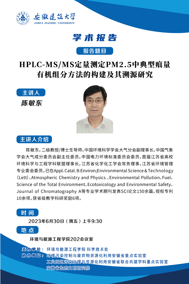 2023年第24场学术报告:HPLC-MS/MS定量测定PM2.5中典型痕量有机组分方法的构建及其溯源研究