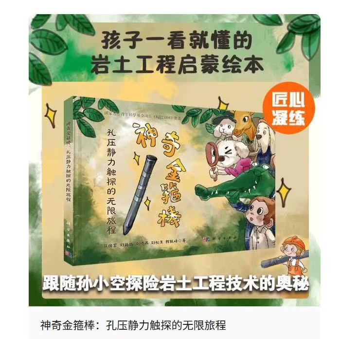 近日,我校蔡国军教授团队创作的科普读物《神奇金箍棒:孔压静力触探的无限旅程》获得国家自然科学基金委员会官方网站专题报道,并入选科学出版社2026年1月“科学新书榜”人文社科类榜单前十(排二)。