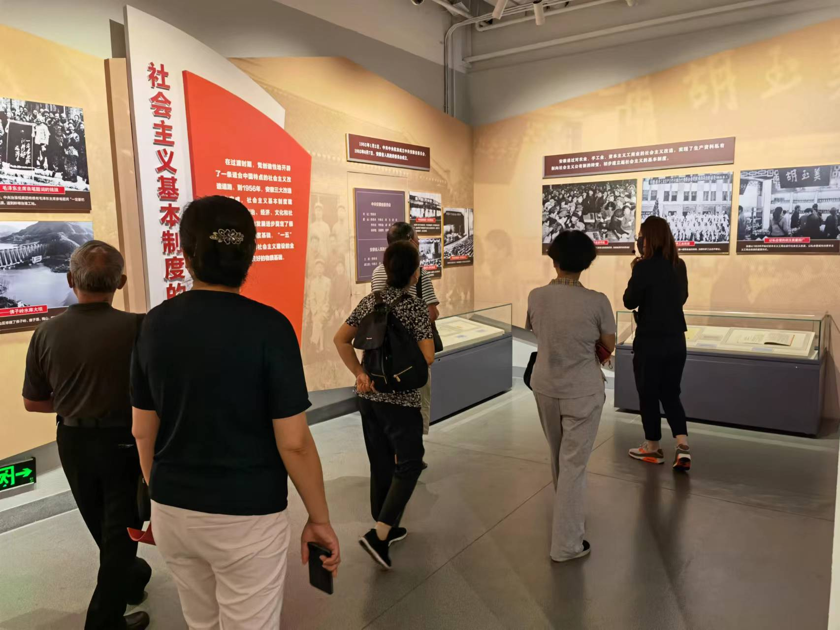 本网讯 7月6日,老年书画摄影研究会分别赴安徽省博物馆、合肥久留米友好美术馆参观学习。老同志们首先观看了“初心映江淮——庆祝中国共产党成立100周年主题展”。此次展览以时间发展为主线,分为“缔造新世界”“建设新家园”“奋进新时期”“阔步新时代”四个部分,通过实物、图片、模型、场景等形式,生动展示了在中国共产党的领导下,江淮大地发生的沧桑巨变和取得的辉煌成就。