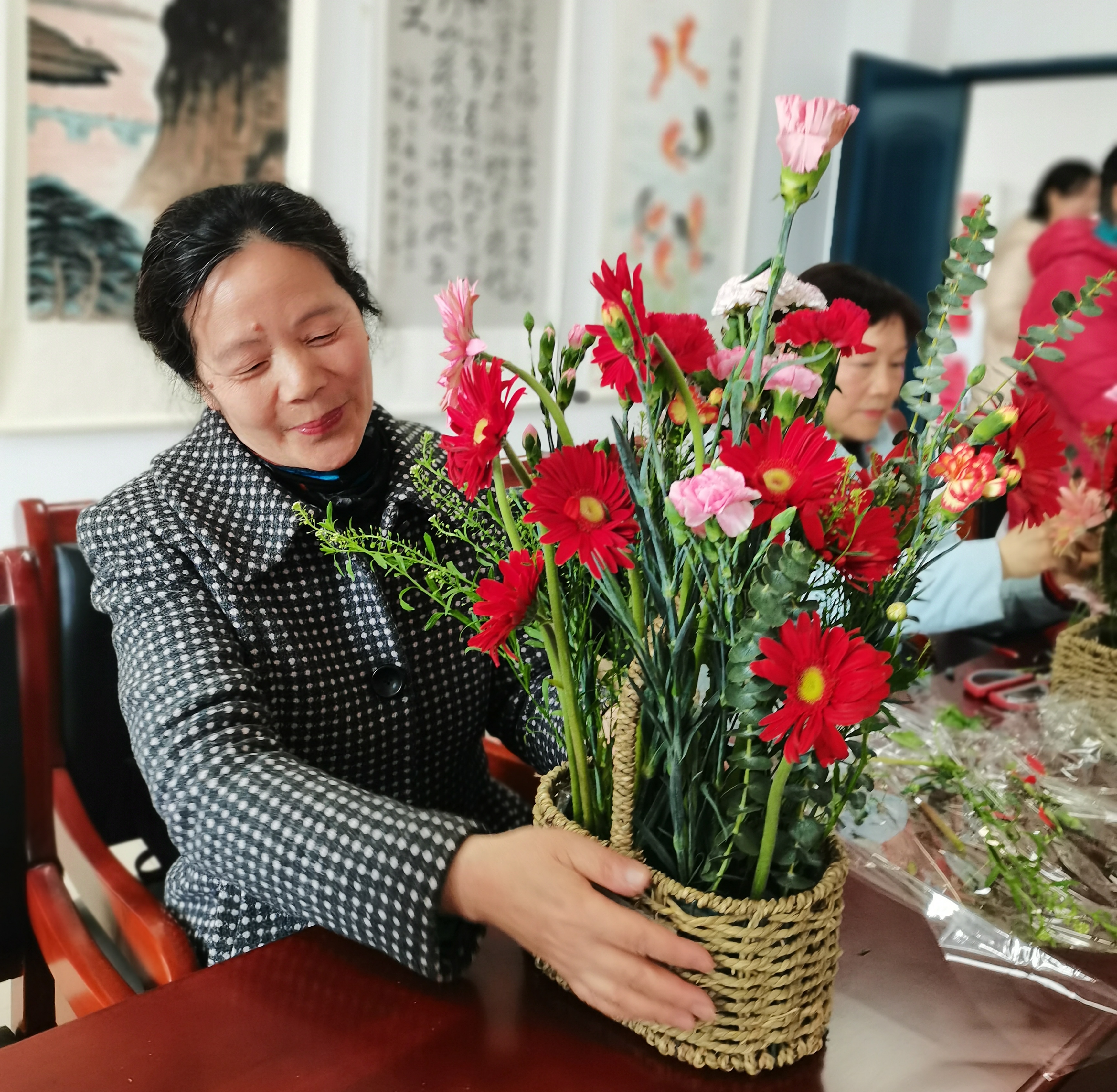 花漾生活,溢满芬芳。本次活动旨在通过鲜花的美丽语言为离退休女教工献上真挚的节日祝福。大家在与花草的交流中身心得到了放松,在与往昔同事们一起参加活动也加强了情感交流。“今天参加插花活动,非常开心,既陶冶了情操,增长了知识,又收获了满满芬芳,是最好的妇女节礼物,希望以后多组织这样的活动,让我们的生活更加多姿多彩。”参加活动的老师表示。(作者:赵巧云;审核:汪涛)