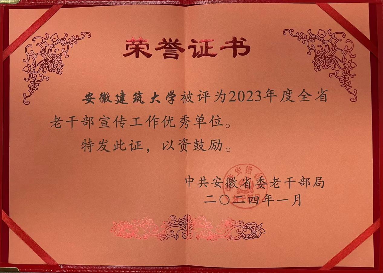 本网讯 近日,中共安徽省委老干部局发文通报2023年度全省老干部调研、宣传、信访工作优秀单位,我校被评为2023年度全省老干部“宣传工作优秀单位”。