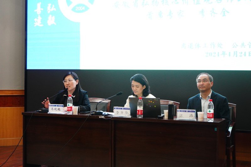4月24日,活动邀请安徽省弘扬核心价值观名师工作室首席专家、安徽建筑大学退休教师李齐全教授作“以文载道,自信前行”主题报告,离退休工作处与公共管理学院党委负责人参加活动。讲座中,李齐全教授从文化自信的角度出发,深入浅出地阐释了“何以信、信什么、如何信”三个基本问题,强调文化是一个国家、民族的灵魂,文化自信是中国文化软实力建设的理论基础,号召新时代青年大学生要敢于超越与创新,要强自信、敢担当,于担当中历练,于自信中自强,共同努力传承优秀传统文化,创造属于新时代新青年的新文化。