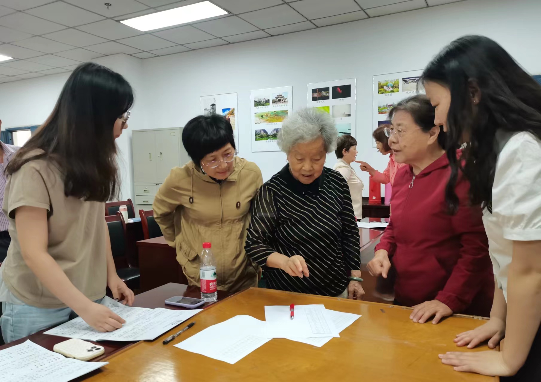 上课前,助理们来到离退休活动中心葫芦丝、合唱、非洲鼓等教室,协助老年大学班长做好各项课程准备。课堂上,和老年学员们一起接受来自课程专业老师的培训;与老同志们共同学习并助学答疑;现场及课后学习群里交流探讨每堂课上的所学知识点。