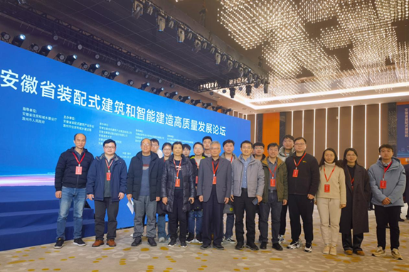 本网讯 近日,安徽省装配式建筑和智能建造高质量发展论坛在滁州市举办。此次论坛在安徽省住房和城乡建设厅、滁州市人民政府统筹指导下,由安徽省装配式建筑产业协会、滁州市住房和城乡建设局主办,安徽金鹏绿色建筑产业集团有限公司、安徽金鹏建设股份有限公司、安徽建筑大学、安徽省装配式建筑研究院、安徽省BIM工程中心承办。安徽省装配式建筑产业协会会长、安徽建筑大学丁克伟教授,安徽建筑大学土木学院副书记马智鑫、副院长陈东、副院长施国栋等一行参加了此次论坛。
