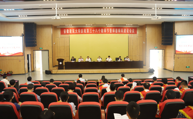 本网讯 9月9日,学校在南校区实验综合楼二楼报告厅隆重召开庆祝第38个教师节暨师德师风建设会议。校领导孙道胜、黄显怀、蔡新立、王玉兰、闵杰、蔡国军、李早出席大会,2022年新入职教师、师德标兵、优秀教师、优秀教育工作者等教师代表,全体处级干部参加会议。会议由党委常委、副校长蔡新立主持。