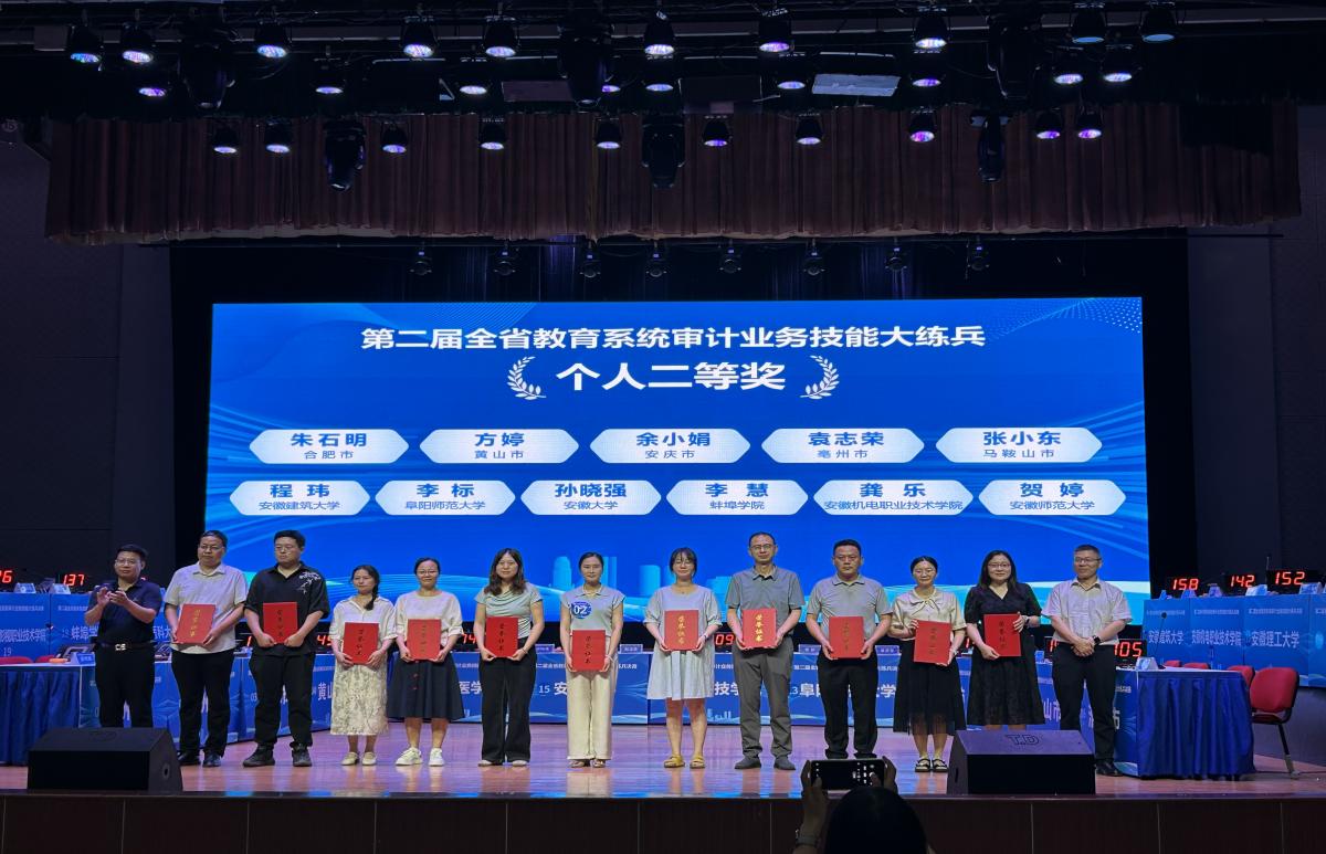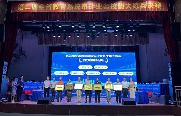7月4日下午,由安徽省委教育工委、安徽省教育厅主办,安徽大学承办的第二届全省教育系统审计业务技能大练兵活动在安徽大学圆满落幕。经过激烈角逐,我校审计处代表队在决赛中荣获集体一等奖和优秀组织奖,程玮同志获个人二等奖。