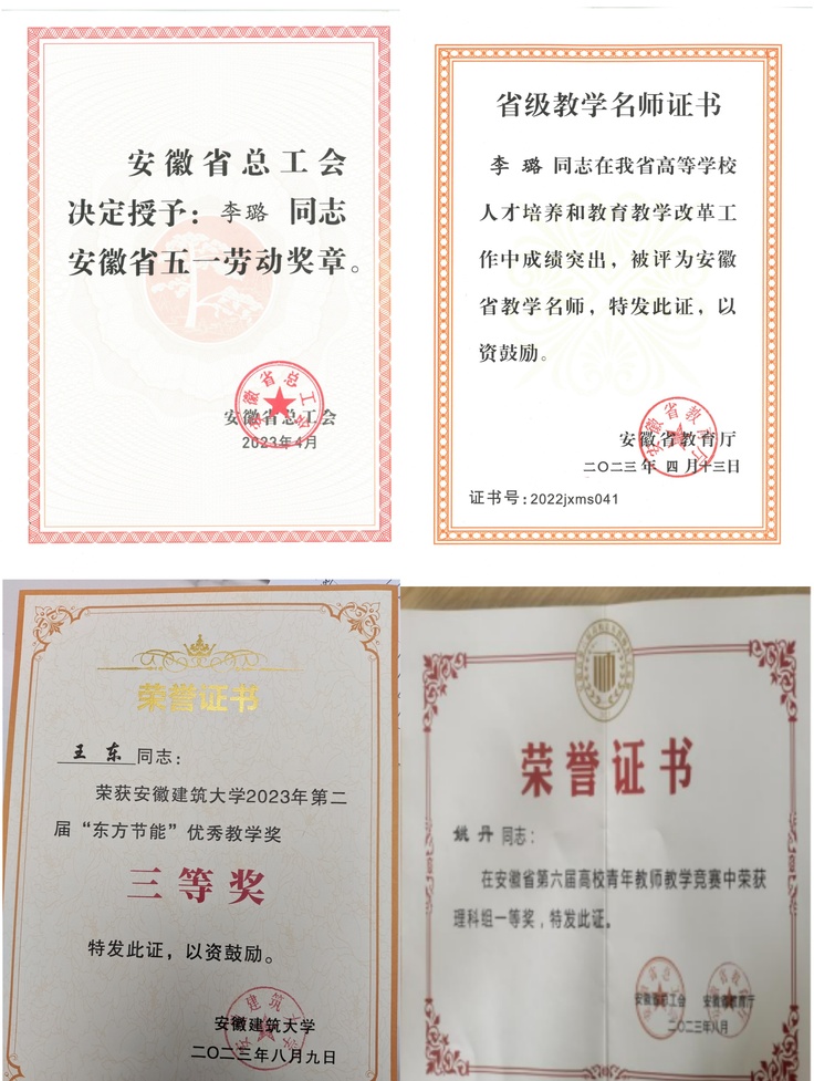 这一年,学院尤其重视教育教学工作,多措并举,实现多项获奖。学院1名教师被授予安徽省劳动竞赛先进个人,并获安徽省五一劳动奖章;13名教师获评安徽省数学建模优秀指导教师;1名教师被评为安徽省教学名师;1名教师获安徽省“青教赛”一等奖;1名教师获校东方节能优秀教师称号;1名教师获校创新比赛一等奖。