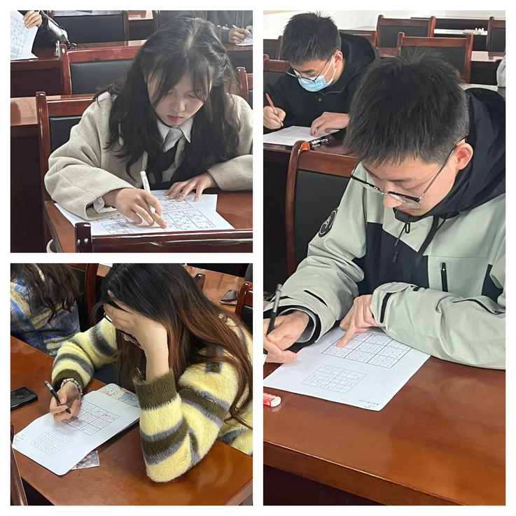 本网讯 为庆祝第五个国际数学日,进一步提高学生对数学学习的兴趣,拓展大学生数学思维的宽度,锻炼逻辑思维能力。3月13日,数理学院在徽风楼1306举办第一届Ω数独比赛活动。