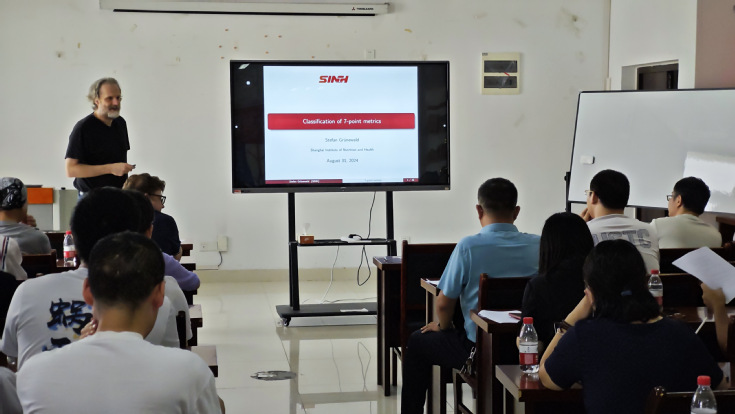 谭莹莹教授首先作开幕致辞,对来自中科大和安徽大学的教师、博士后和博士生及其它参会代表表示诚挚的欢迎,感谢参会专家们对安徽建筑大学数理学院的信任和支持。随后中国科学院上海营养与健康研究所Stefan Gruenewald教授作了题为“Classification of Seven-Point Metrics”的学术报告、来自山东大学的国家级青年人才上官冲教授、东南大学许怡安博士、江西财经大学和湘潭大学靳伟教授、江西师范大学李红海教授分别就代数组合领域最新研究成果和进展作了邀请报告。