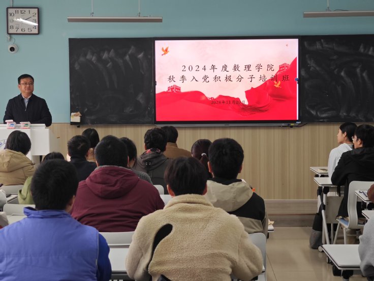 本网讯 为使学院入党积极分子端正入党动机,坚定理想信念,为早日加入中国共产党奠定坚实基础。近日,数理学院成功举办2024年秋季入党积极分子培训班,共57名入党积极分子参加了此次培训。