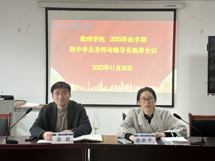 本网讯 为深入贯彻落实立德树人根本任务,健全协同育人工作机制,加强学风建设提升人才培养质量,11月26日数理学院在徽风楼1306室召开学业导师与辅导员联会。学院党委书记张毅院长谢新平及全体学业导师、辅导员出席会议,会议由张毅主持。