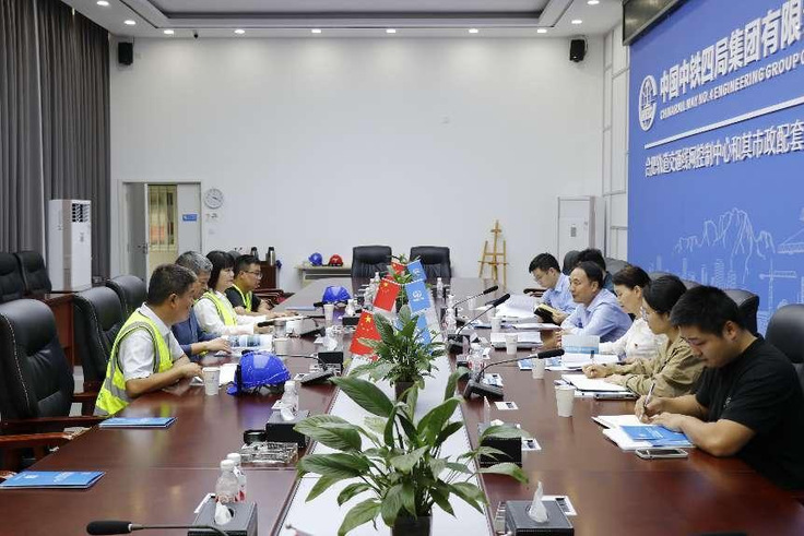 参观结束后,项目经理赵敏捷和项目书记侯静对项目的整体建设情况进行了详细汇报。张晓燕对项目的党建工作和扬尘治理成效给予了充分肯定。蔡勇在座谈中表示,项目党建工作用心、用情、用力;党组织活动真学、真用、真实;现场扬尘治理工作有组织、有队伍、有设备、有措施。付芝兵指出项目生产工作、党建工作要创新进取,以创新推动生产、以创新促进党建与生产深度融合。随后,秦荣水就红色工地试点建设与侯静展开了进一步交流,具体内容包括红色工地创建中的典型案例分享与经验推广、党建工作与生产经营的深度融合、如何有效调动群众参与并推动文化建设、监督与考核机制的落实与优化,以及试点过程中面临的主要问题与针对性的改进措施。