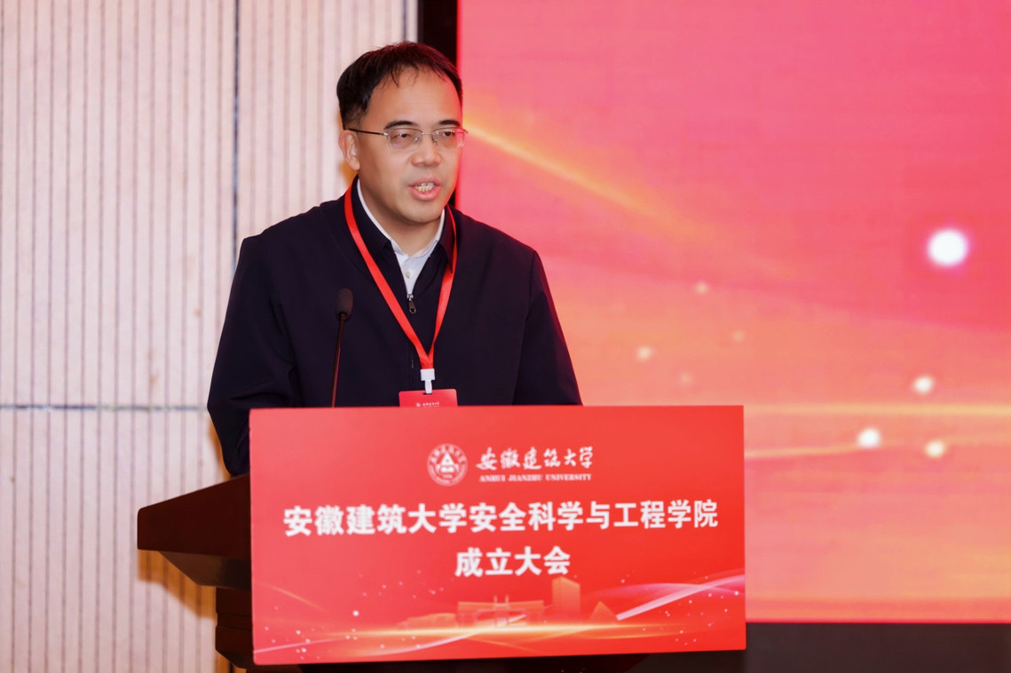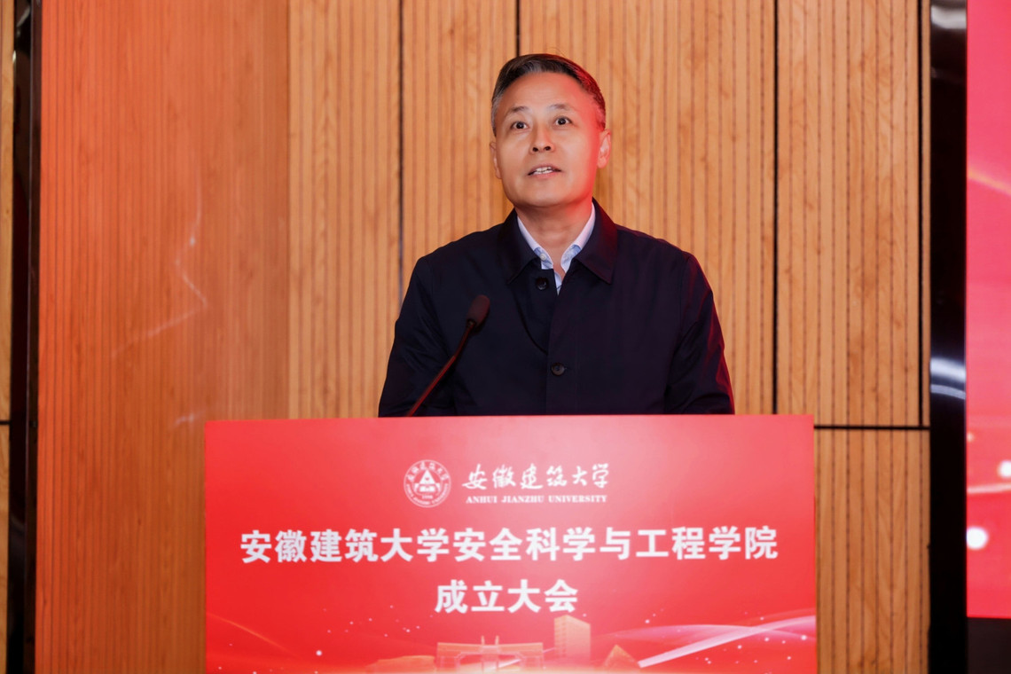 周福宝致辞表示热烈祝贺。他指出,在新一轮科技革命与产业变革深入推进的背景下,安全科学与工程学院的成立具有重要意义。中国安全生产科学研究院与安徽建筑大学使命相通、优势互补,希望双方加强合作,共同探索产学研用深度融合的新机制与新路径,协力破解安全领域重大科技难题。