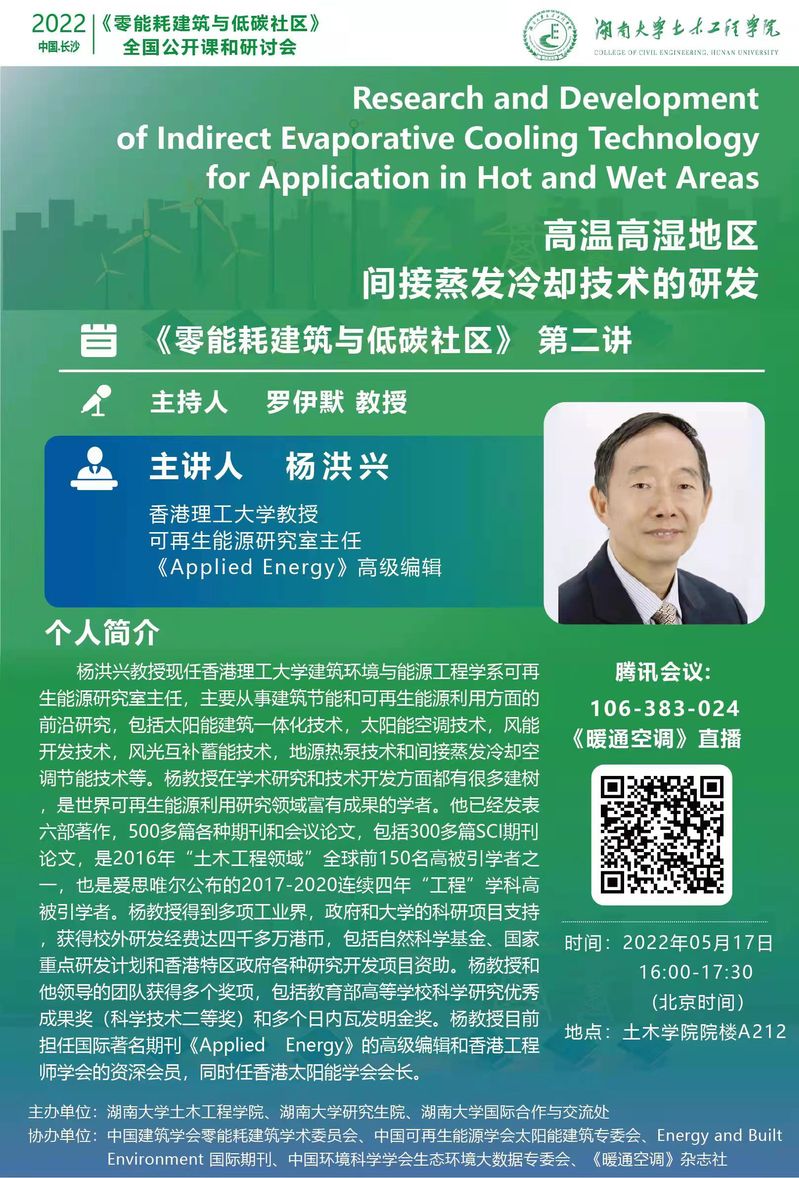 《零耗能建筑与低碳社区》公开课——第二讲 高温高湿地区间接蒸发冷却技术的研发