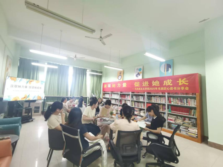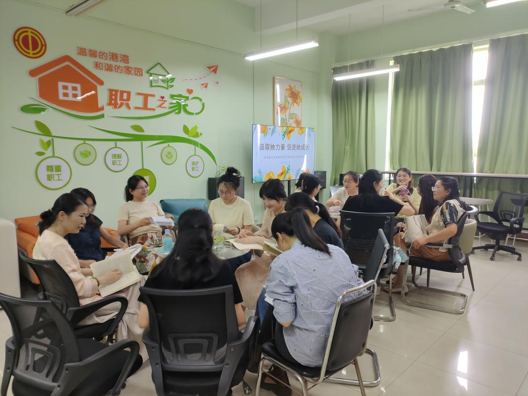 本网讯 为深入学习贯彻习近平总书记在庆祝中华全国总工会成立100周年暨全国劳动模范和先进工作者表彰大会上的重要讲话精神,激发教职工阅读兴趣,营造浓厚的书香氛围,6月18日,马克思主义学院在职工小家举办主题为“汲取她力量 促进她成长”的书润匠心读书分享会。分享会由学院分工会主席刘晓君主持,20余位女教职工参加。