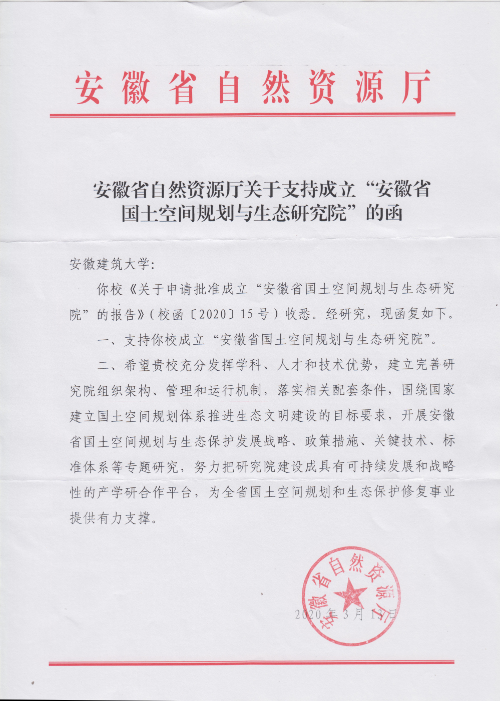 安徽省国土空间规划与生态研究院是全面落实安徽建筑大学和安徽省自然资源厅合作框架内容,在自然资源厅的支持下,于2020年4月成立。研究院面积680m2 ,现有研究人员32人,其中高级职称20人,具有博士学位18人。