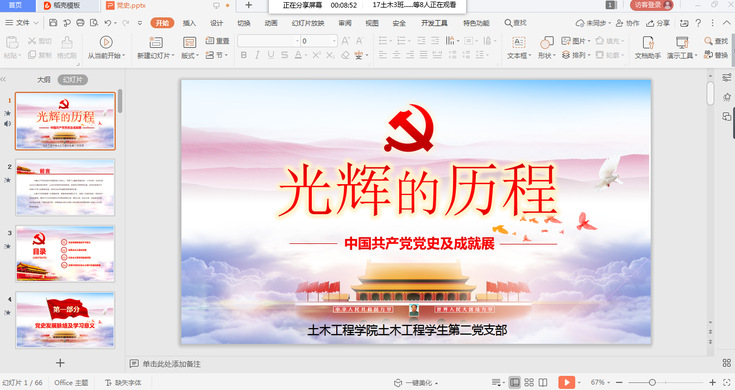 本网讯 为贯彻落实习近平总书记重要指示精神,持续加强党史、新中国史学习教育,按照学校组织部的工作安排部署,土木工程学院学生第二党支部在线上开展了微党课暨主题为“牢记党的历史、坚守初心使命、决胜全面小康”为主题的党史学习教育和组织生活会。支部书记范瑾进行了题为“光辉的历程”党课宣讲并主持了组织生活会,支部全体党员参加了本次学习会议。 范瑾同志从党史发展脉络及学习意义、新民主主义革命时期、社会主义革命和建设时期以及改革开放和社会主义现代化建设时期四个方面进行了微党课宣讲。她强调,加强党史学习可以从历史中汲取智慧和力量;是加强党的思想理论建设的重要任务;同样也是继承党的成功经验和优良传统的需要。