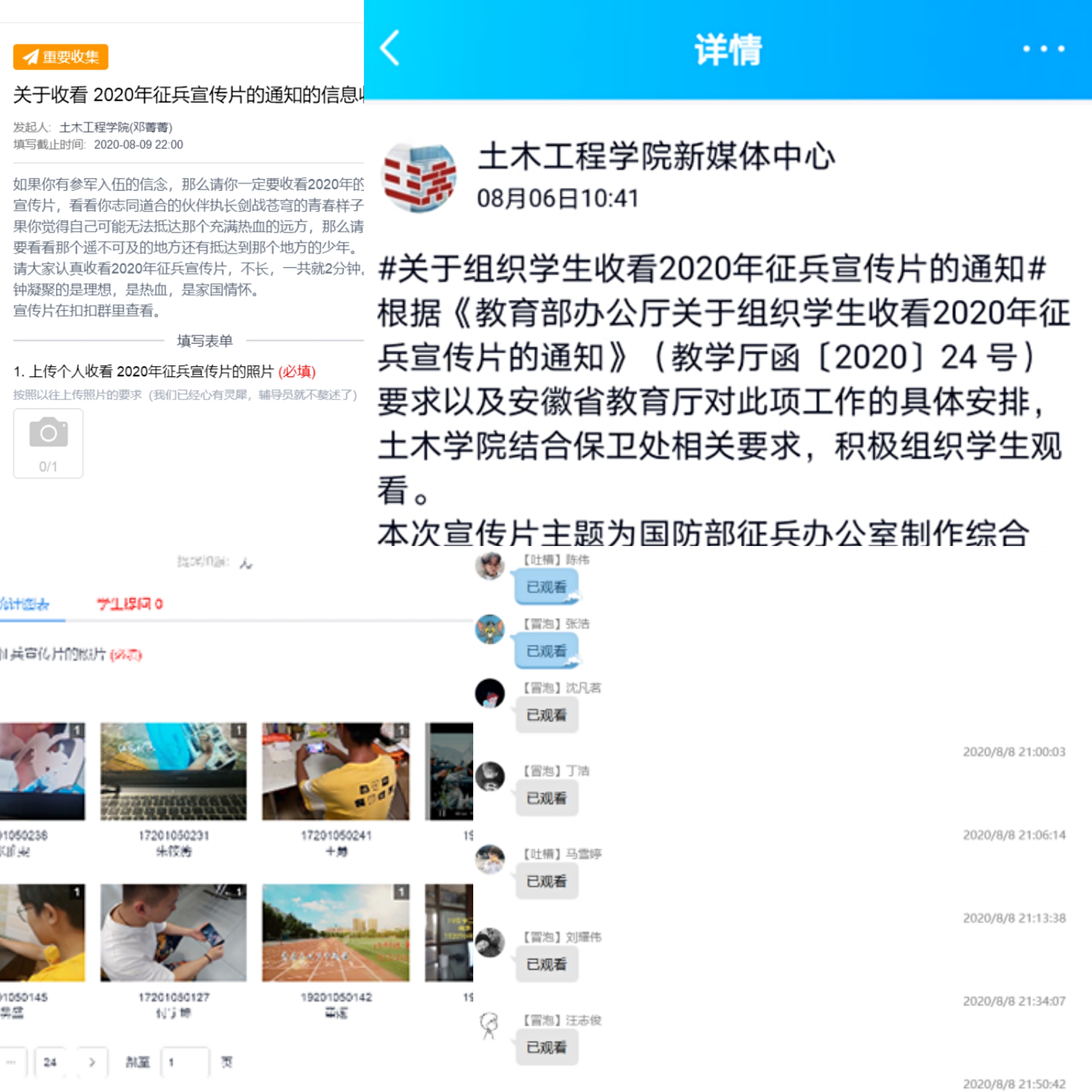 | 土木学院组织学生收看2020年征兵宣传片 |