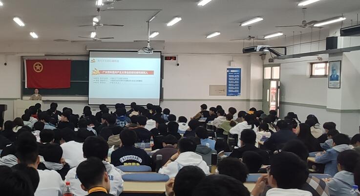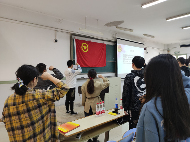 本网讯 3月24日,土木学院第49期团课学习在南校区东辅楼2303开班,共244名共青团员参加。本期团校以“学党史、强信念、记使命、跟党走”为主题,讲述了团的基本知识、共青团团史、爱国主义与志愿服务精神以及当代大学生的时代重任等。 在团课开班仪式上,学生代表杨晨作为领誓人带领在场的所有团员重温了入团誓词。在“我志愿加入中国共产主义青年团,……吃苦在前、享乐在后,为共产主义事业而奋斗”的庄严誓词和“光荣啊,中国共青团”激昂的团歌声中,团课正式开始。