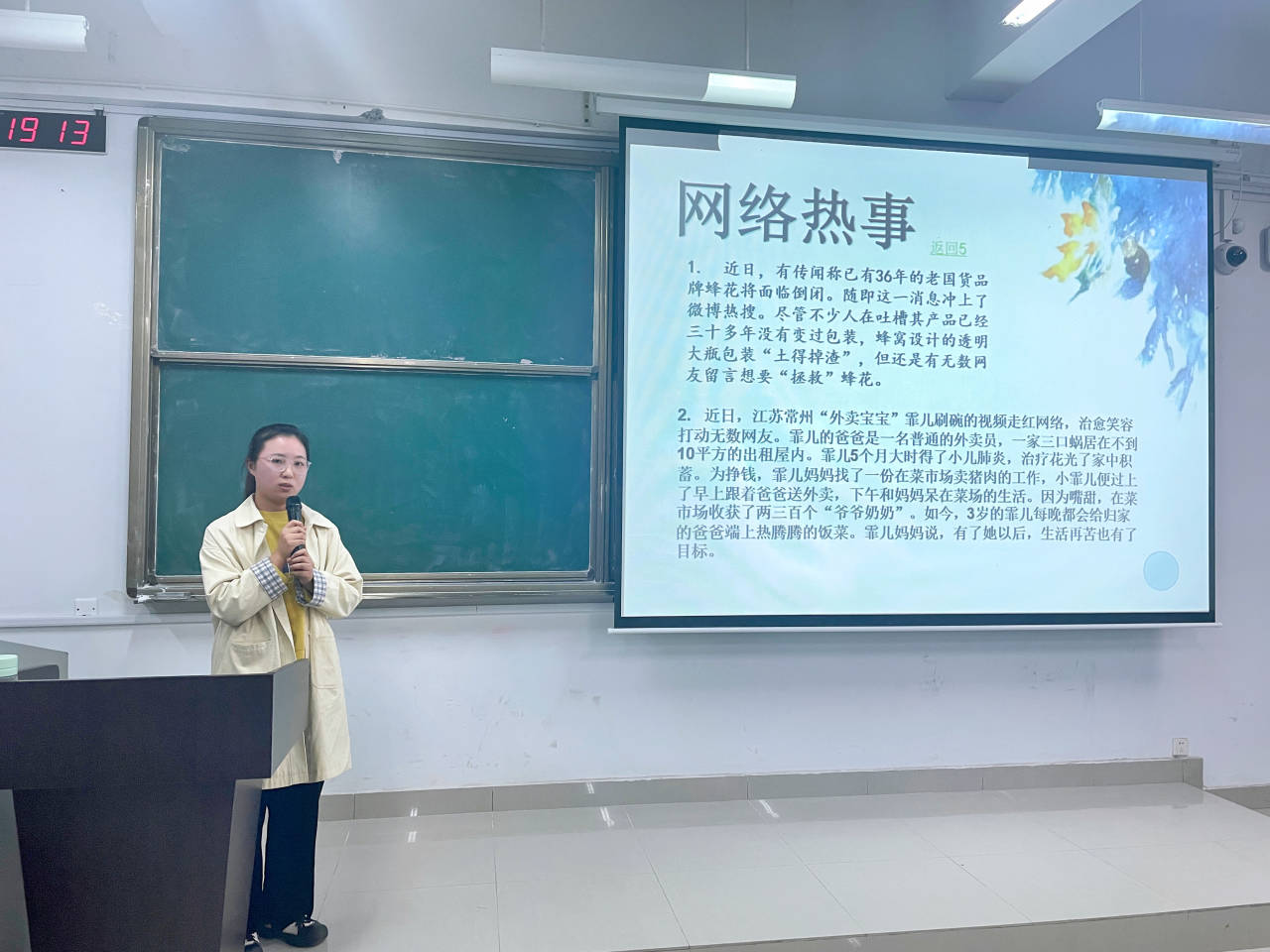 本次比赛共分为三个环节。首先,每位选手在自我介绍后,自备主持稿进行模拟主持。在第二个环节里,选手们根据党史图片讲述“党史小故事”,展示了自己的语言组织能力和知识储备。伴随着激烈的角逐,比赛进行到了最后的决胜环节,选手们依据随机的场景进行即兴主持,这个环节考验了选手们的临场应变能力。精彩的比赛赢得了同学们热烈的掌声。最终方博洋同学以94的高分摘取了本次比赛的桂冠。