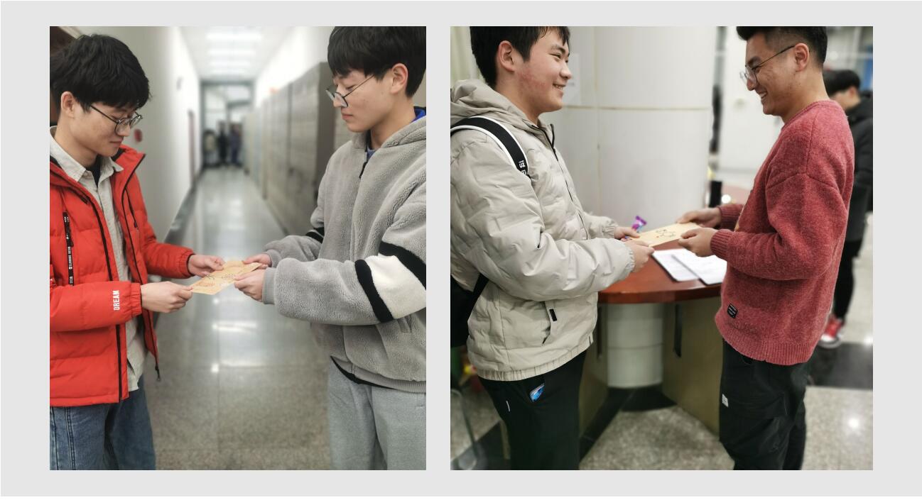 时值研究生考试最后的备考冲刺阶段,考研学子们除了要应对每天高强度的复习外,在心理上也承担着很大的压力。为了帮助考研学子放松心态,土木工程学生第一党支部组织支部成员在信纸和明信片上写下对考研学长学姐们的祝福和加油鼓劲的话语,并准备了暖心小礼品。12月20日晚,同学们来到图书馆,将信和礼物送到考研学子手中。他们将自己对于考研学子们的祝福写在了一段段优美文字里,一幅幅可爱的图画里。这些祝福化作冬日里的一缕缕暖流,寄托了同学们对于学长学姐们的殷切期望与真心祝福。