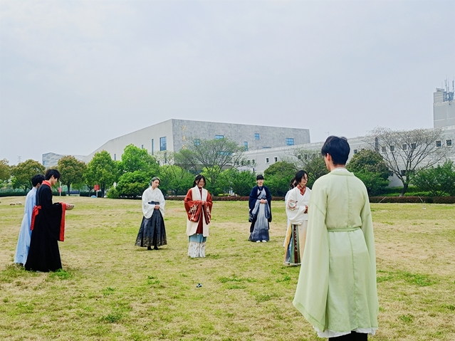 春色撩人,大家身着传统服饰结伴踏青、挂红、合影不辜负这美好的春天。接下来便是大家所有人的舞台,所有人各显神在通接诗词、“飞花令”、“占花令”的每个节目都留下了精彩时刻。 本次活动积极响应学校号召,开展小型多样的社团活动,带领大家切身体验传统文化,提高我们的文化自信,让大家在欢声笑语中学到知识,感受到传统文化的魅力,得到了同学们的积极响应。(文/图:杨心玉、范瑾;审核:王媛)