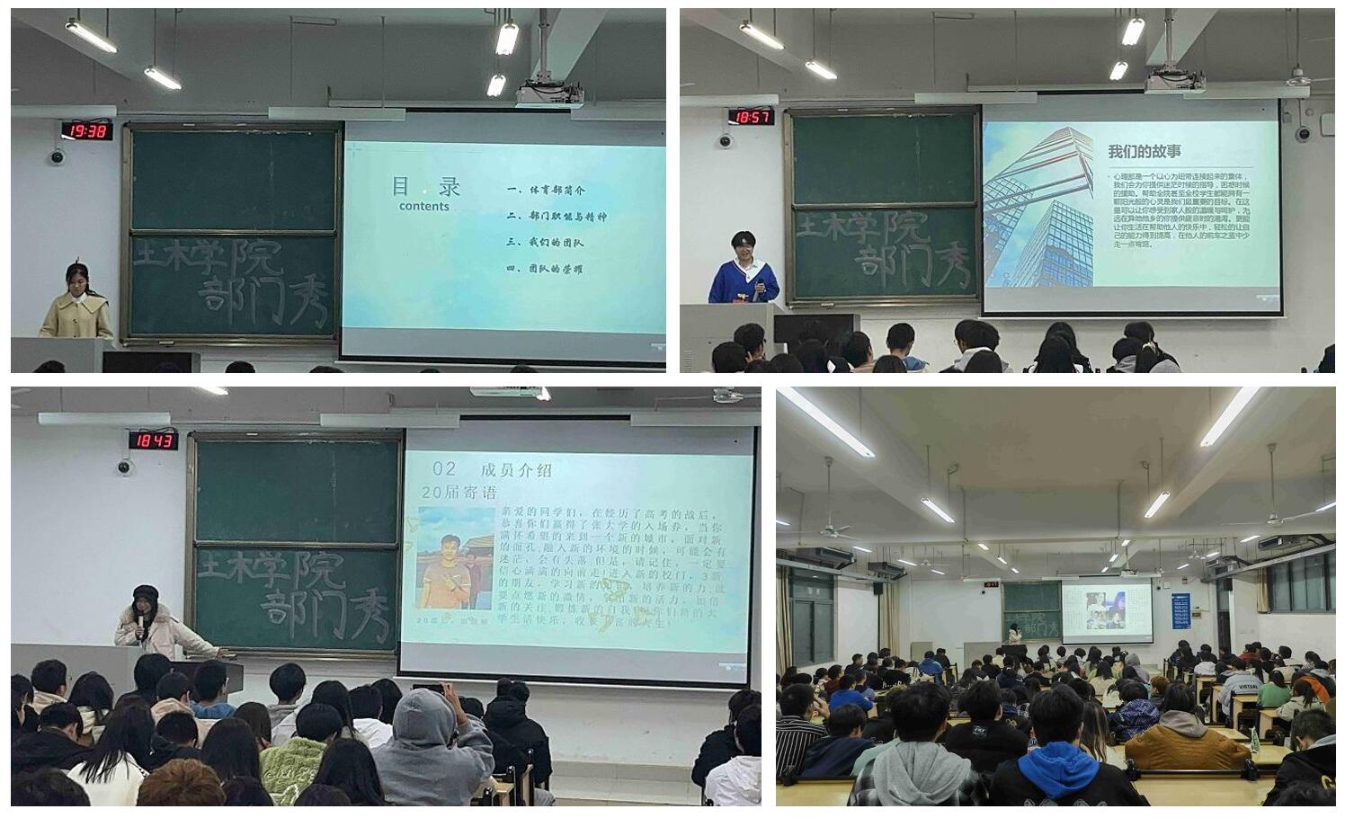 本网讯 为丰富校园文化生活,促进学生会各部门之间的沟通交流,11月18日,土木学院“同舟有幸,踏梦前行”部门秀活动在逸夫楼5201如期举办。
