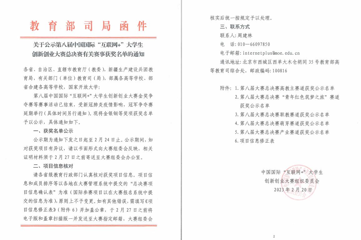 本届大赛于去年4月正式启动,土木学院积极沟通学校其他有关学院、整合资源、收集素材。备赛期间学院组织专家多轮打磨,从项目计划书、PPT、参赛视频等方面全方位提升项目质量。决赛期间,土木学院会同教务处(创新创业学院)组织安排参赛场地、设备,做足做细赛前各项准备。 一直以来,土木学院高度重视创新创业竞赛育人工作,多次召开竞赛培育专题会议,为本项目团队提供了全方位保障。此外,教务处(创新创业学院)、就业工作处、科技处等部门对本项目给予了大力支持与帮助。下一步土木学院将以学习贯彻落实党的二十大精神为契机,推动学用结合,围绕“互联网+”大学生创新创业等各类赛事,加强与学科专业教育相融合,努力创造更加丰硕的双创教育成果,不断提升人才培养质量!(文/图:王月竹 李天宇;审核:王媛)