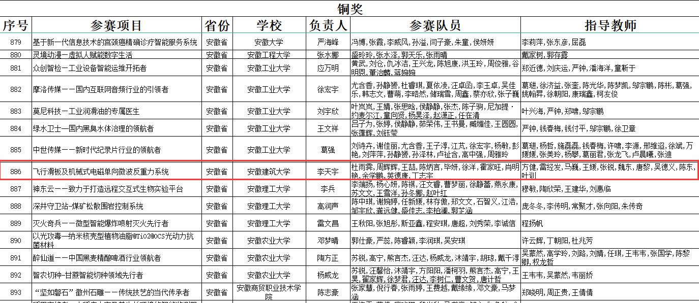 在本次大赛中,我院《飞行滑板及机械式电磁单向磁悬浮反重力装置》项目,斩获高教主赛道国家级铜奖。“飞行滑板及机械式电磁单向磁悬浮反重力装置”依托中科院合肥物质研究所强磁场中心进行单向磁悬浮飞行滑板的研发制造,同时参与安建大与工信部校企协同就业创业创新示范实践基地建设。研发的产品是国内第一款单向磁悬浮反重力飞行滑板,联手国轩电池等行业龙头企业,领跑低空低速载人飞行产品新赛道。