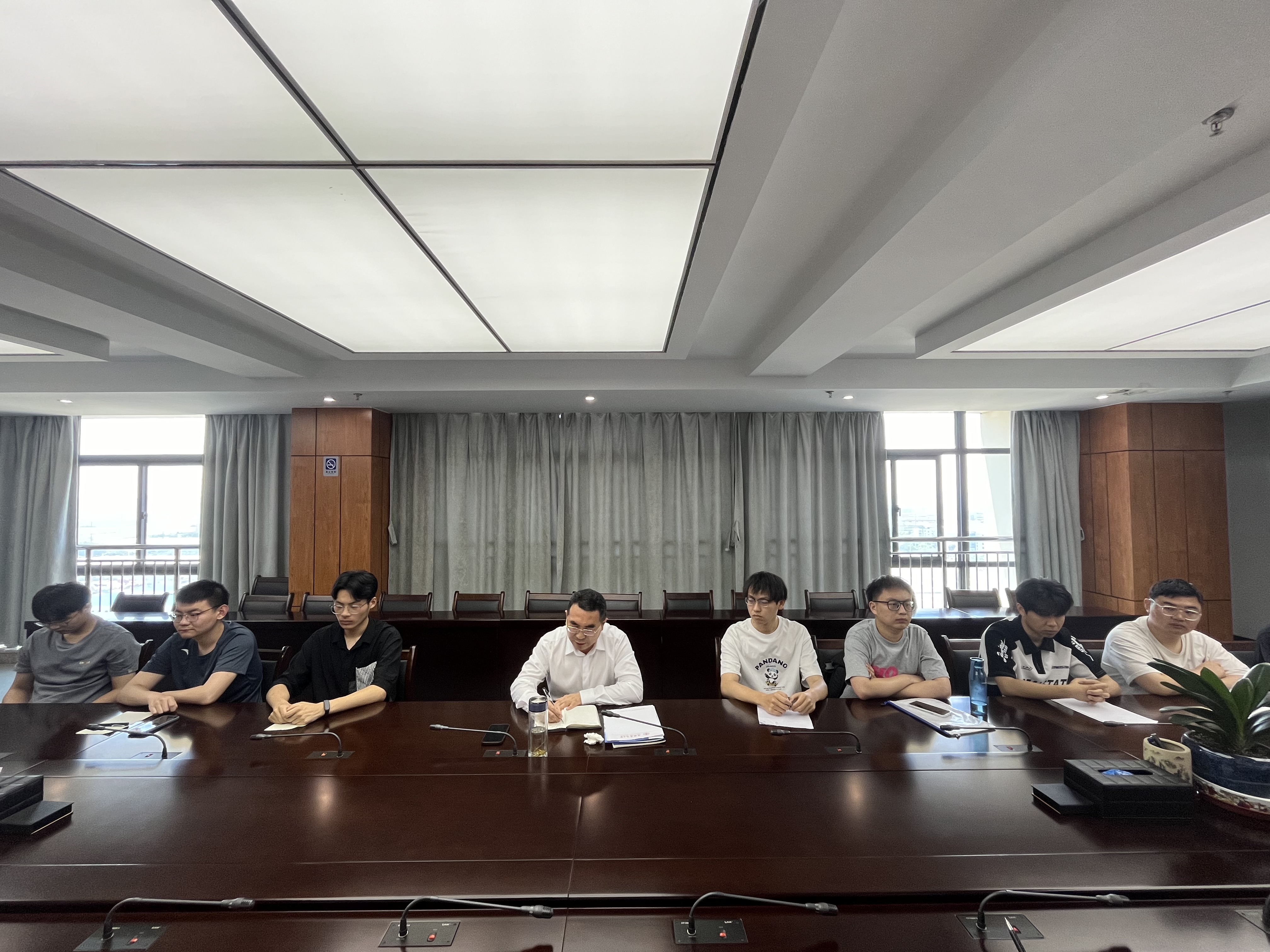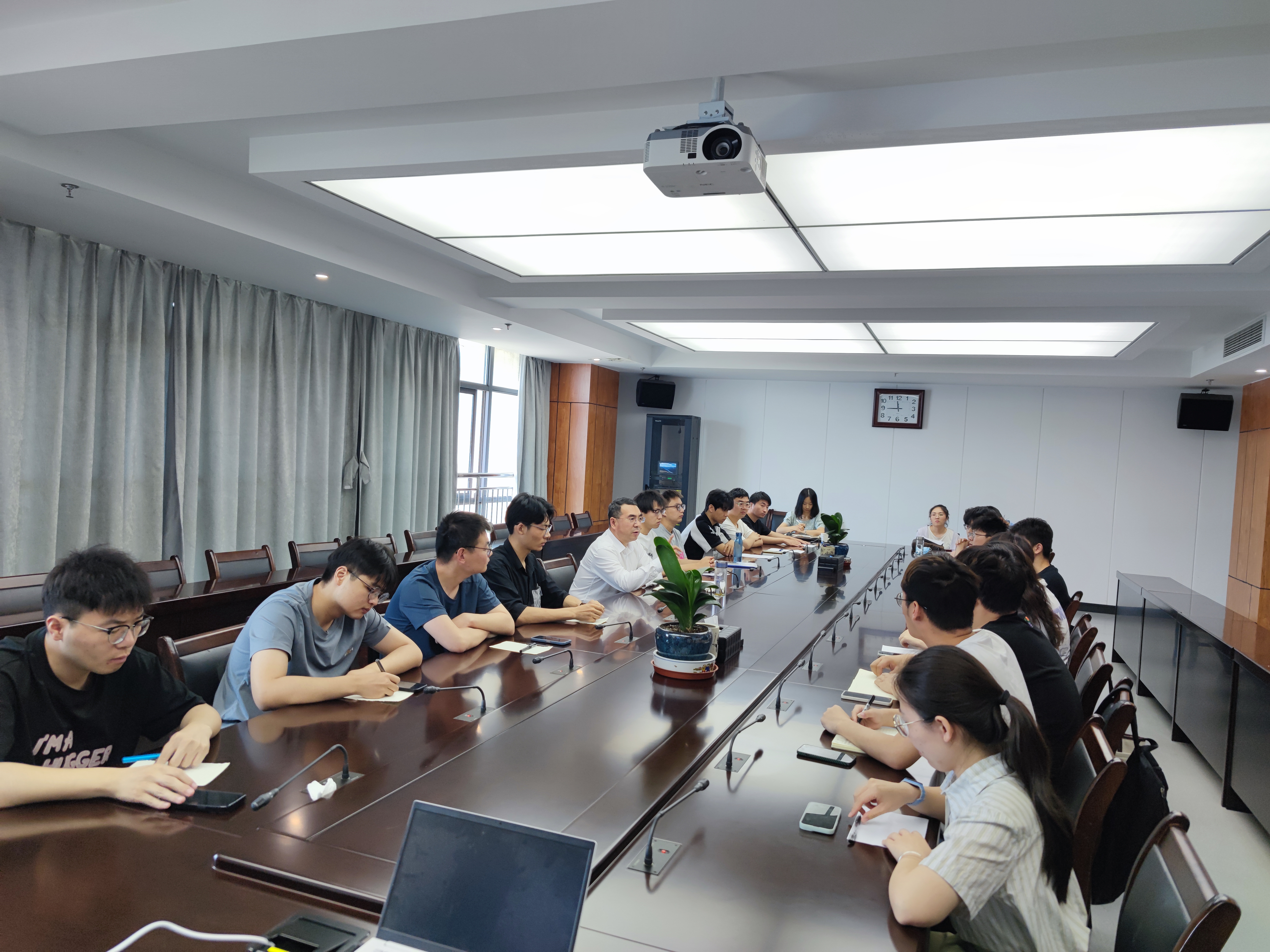 会议中,老师与同学们交流讨论学习情况,研究生们分享学习、科研和写作的经验。同学们踊跃发言,提出问题和所面临的一些挑战,蔡国军教授和各位老师耐心予以解答,提出了宝贵的建议,提出构建全过程质量管理体系,科学制定培养方案,持续加强过程管理,把好学位论文质量关。