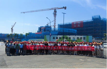 本网讯 为积极响应人才培养目标的基本要求,加强学生对专业领域的认识,5月29日上午,土木工程学院2024届道路桥梁与渡河工程专业和交通工程专业全体学生赴合肥市高新区讯飞小镇两个建筑工地开展了毕业实习活动。土木工程学院道桥系系主任石贤增、副主任周宇带领全系10位老师全程参与了实习过程指导。
