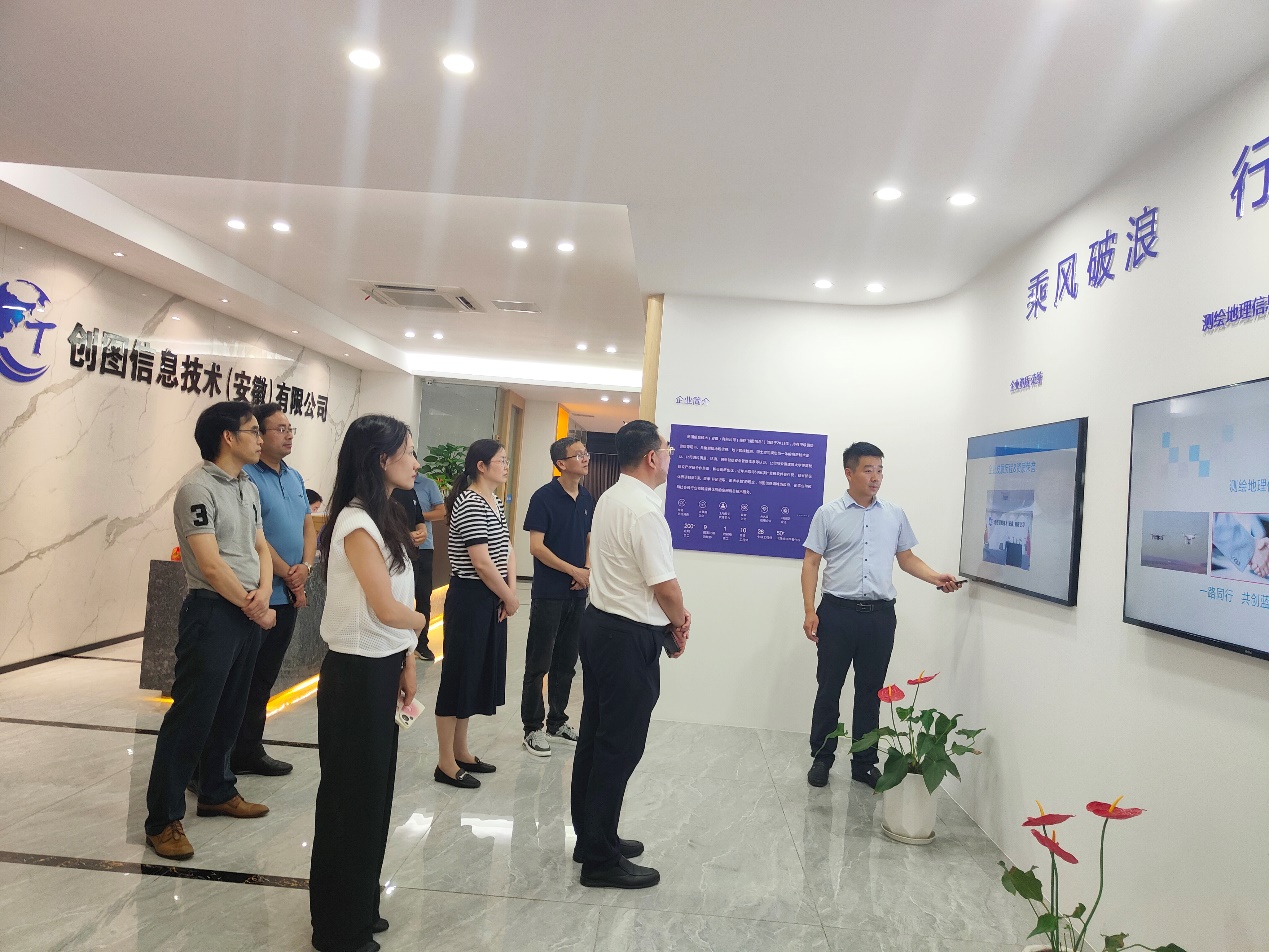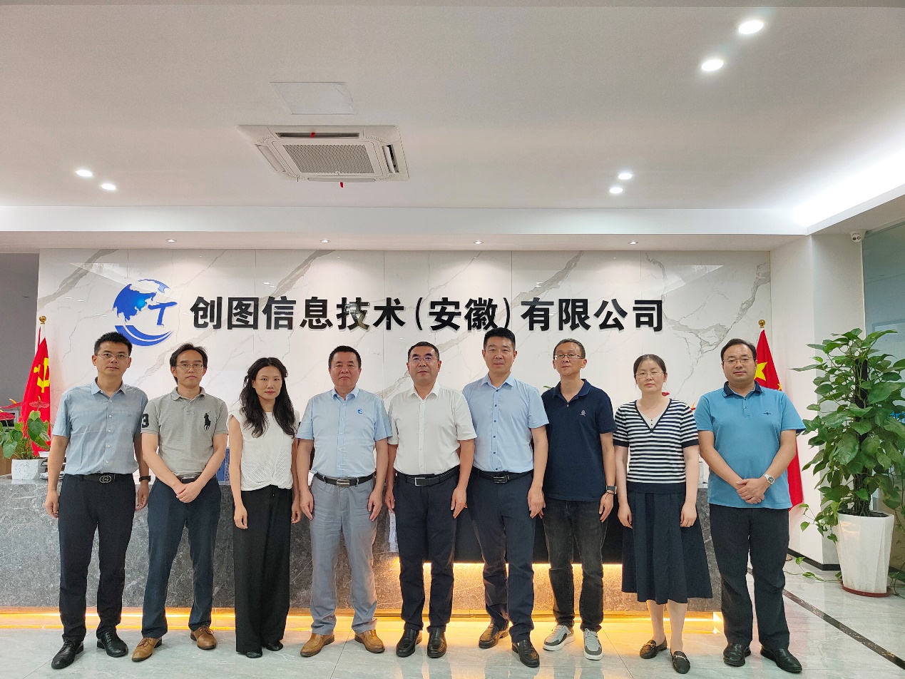 本网讯 6月26日,校党委常委、副校长蔡国军带队赴校友企业创图信息技术(安徽)有限公司开展校企合作交流暨“访企拓岗促就业”专项行动,进一步拓宽就业渠道、深化校企合作。就业工作处、土木学院、机电学院相关负责人和教师代表参加调研交流。创图信息技术(安徽)有限公司董事长、我校2006级测绘工程专业校友代志国,公司常务副总经理、测绘分院院长、2006级测绘工程专业校友张伟,公司总工程师黄北新,公司副总经理、规划分院院长李家宁等热情接待蔡国军一行。