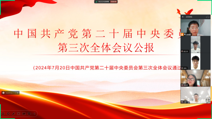 本网讯 为深化对党的二十届三中全会精神的理解,激发学生党员的使命感和责任感,确保思想和行动与全会精神高度一致,交通工程系学生党支部以“学思践悟新精神,筑梦交通新征程”为题,于8月20日举办了一场线上主题党日活动。 会议精神学习