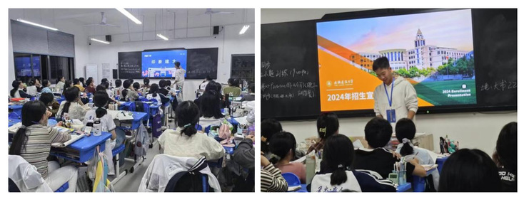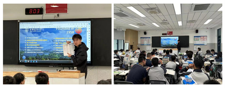 10月5日晚,2023级安全工程专业柳择轩在江苏省六合高级中学高三12班进行了招生宣讲。柳择轩来到母校六合高级中学为正在努力备考的学弟学妹们加油打气,并分享自己的一些学习小妙招,随后重点介绍了安徽建筑大学的专业特色、师资力量、资助政策以及招生流程、报考要求等。在交流环节中,学弟学妹们围绕学校的招生工作、学科专业、学生培养等内容积极踊跃地提问,柳择轩耐心解答了大家在专业选择及招生政策上的疑问,帮助同学们了解安徽建筑大学、增强了学弟学妹们报考建大的想法,提前规划报考之路。 大学是人生的一个重要转折点,学长学姐的引导和帮助则尤为重要。土木学院学子们通过回访高中母校,既从学生角度出发针对高中生的迷茫和困境做出解答,积极宣传高校,为后期招生工作做铺垫,也在筹备和宣讲的过程中激发大学生爱校荣校的情怀。希望通过此次宣传活动,能让更多同学了解并报考安徽建筑大学。(文/图:徐翔/王叶涵、戚鑫磊、柳择轩;一审:叶训;二审:施国栋;三审:王媛) |
