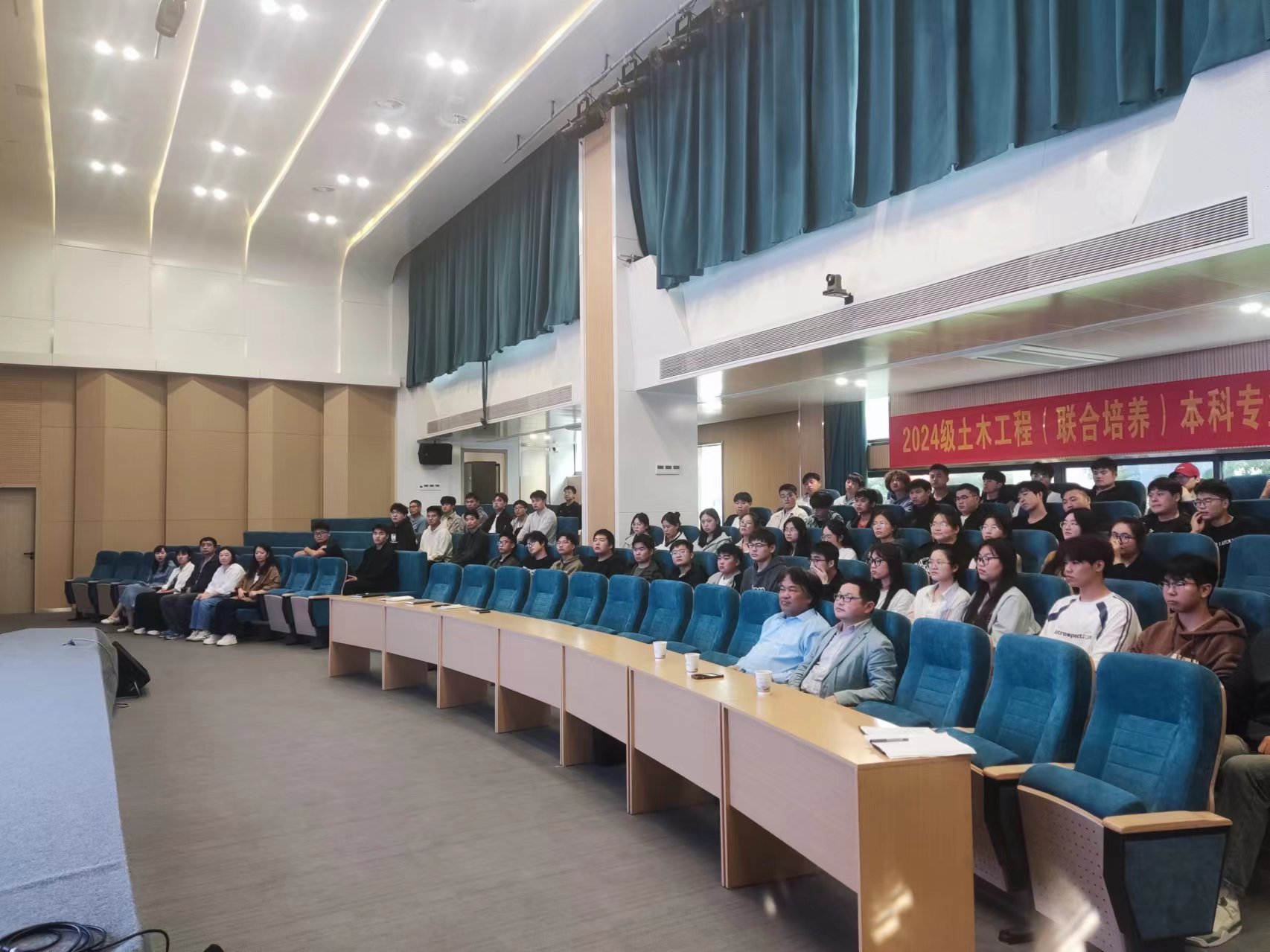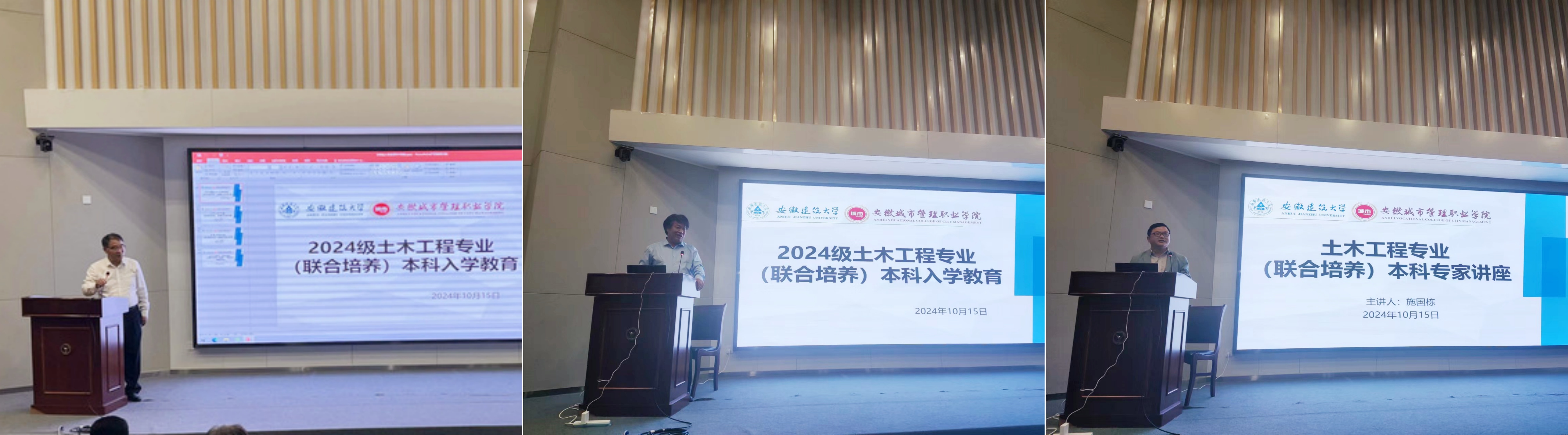 交流分为土木工程专业(联合培养)本科生入学教育和教育教学工作座谈两个环节。入学教育开始前,安徽城市管理职业学院院长刘瑾对我院一行的到来表示热烈欢迎,并介绍了安徽城市管理职业学院发展现状与近几年专业建设等方面取得的成果。