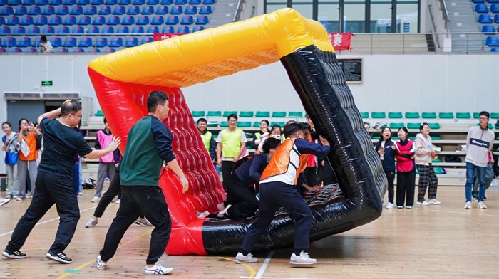 土木健儿们在每一项趣味比赛中都拿出十二分精神全力以赴,在比赛中发扬运动员的拼搏精神,队员们认真商讨如何配合作战,通过大家的坚韧和努力,最终取得优异成绩。