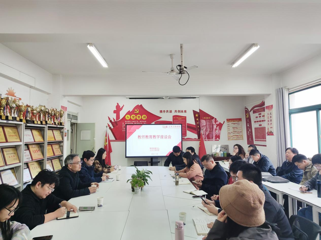 本网讯 近日,为加强教学管理,提高教学质量,及时了解师生在教育教学过程中遇到的困难和疑惑,集思广益促进学院教育教学工作高质量发展,学院开展了教师、学生教育教学座谈会。教师座谈会联合学校教师发展中心开展,主任段宗志、副主任胡大洋和相关科室老师与各系20余名骨干教师参加交流;学生座谈会各专业班级学生代表共30余人参加。两场座谈会均由土木工程学院副院长施国栋主持。