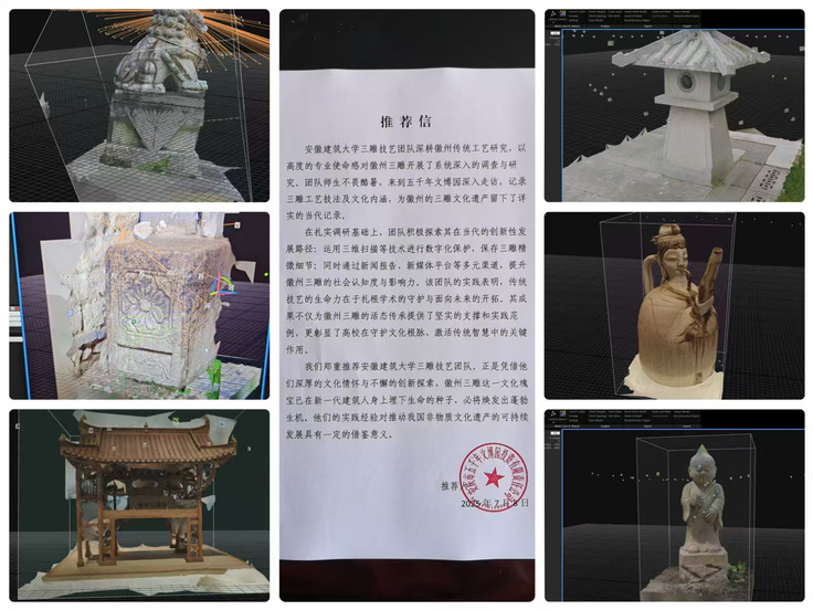 本网讯 为深入学习贯彻习近平新时代中国特色社会主义思想,积极响应文化遗产保护号召,安徽建筑大学土木工程学院砖雕技艺传承调研团队深入安庆潜山、太湖、宿舍、怀宁、桐城地区,开展了一场以“探徽雕神韵·护文脉长存”为主题的“三下乡”社会实践活动。团队师生以匠心独运的调研方式,穿梭于古村老宅之间,用脚步丈量文化厚度,以科技赋能传统技艺传承,书写了一段青春守护非遗的动人篇章。